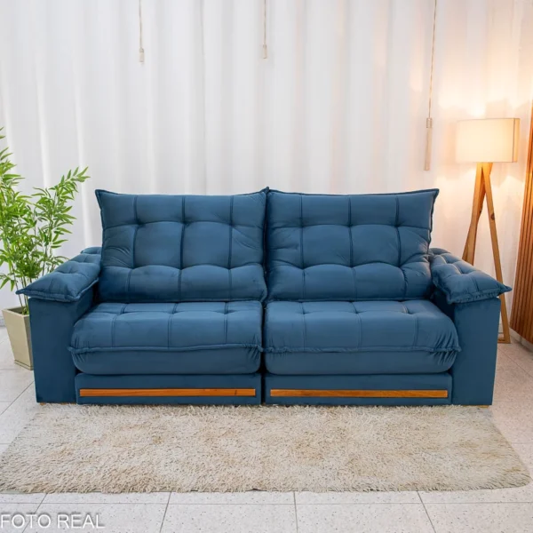 Sofá Retrátil Reclinável Barcelona 2.50m – Veludo Azul 325