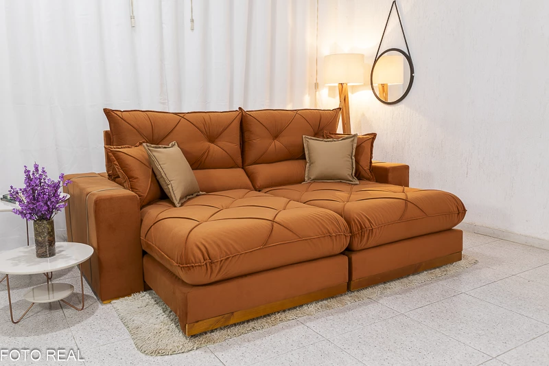 Sofá Retrátil Reclinável Gran Bello 2.30m – Veludo Terracota